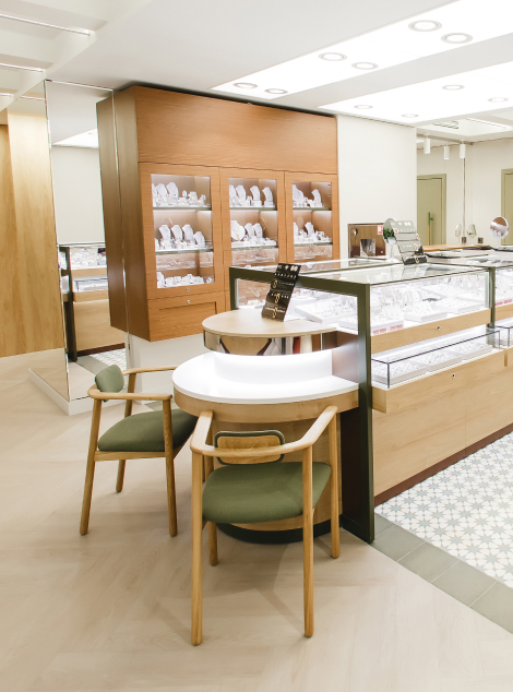 На двух этажах расположены: ювелирный комиссионный магазин, ломбард, ювелирная мастерская, кабинеты геммологов, зона для гостей с мягкими диванами и вкусным кофе.