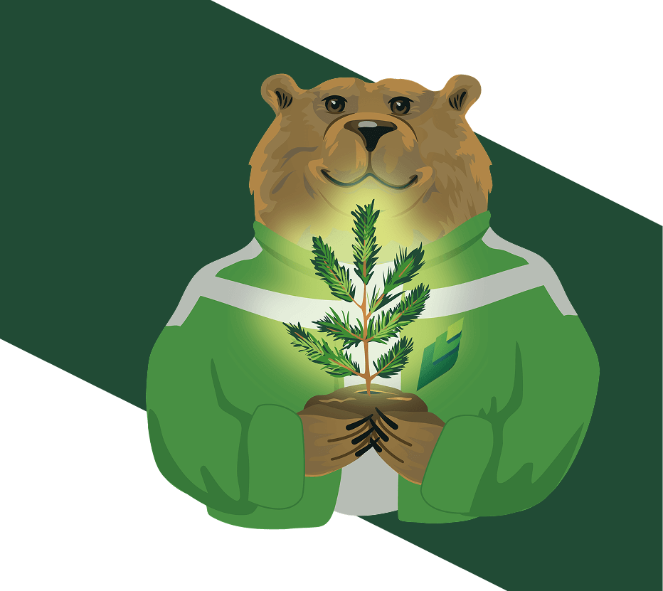 Дерево — возобновляемый ресурс. Мы заботимся о лесе и обеспечиваем правильную вырубку и посадку деревьев.