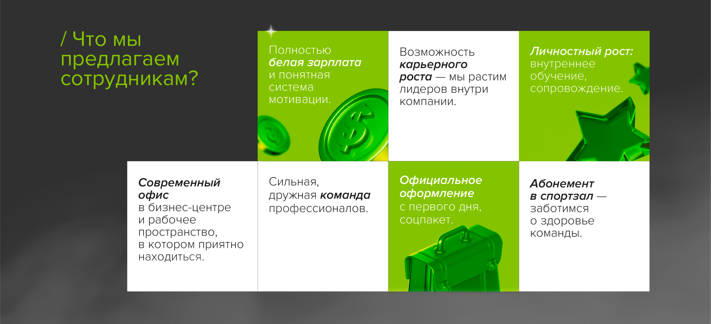- Корпоративную культуру: праздники, подарки детям на Новый год, обучение, тимбилдинги.