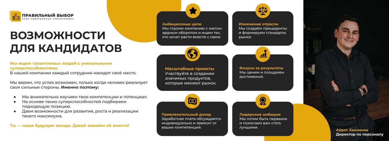 Меня зовут Владислав Цивилёв, я руководитель Партнерской программы «Союза арбитражных управляющих Правильный выбор» - одной из крупнейших компаний по банкротству в РФ. За 10 лет мы освободили от долгов свыше 20 000 клиентов по всей России.