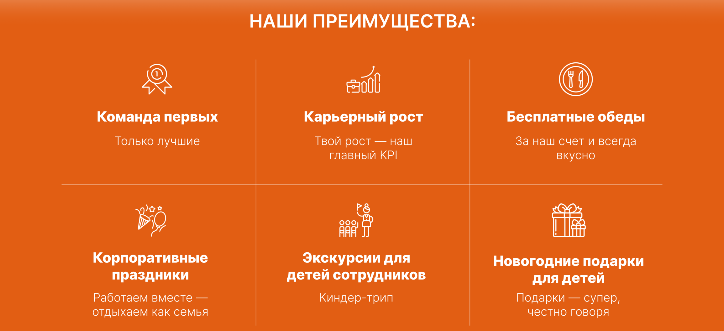 - Карьерный рост и возможность обучения за счет компании;