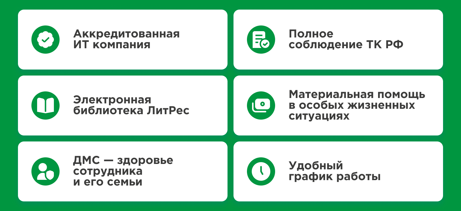 - Трудоустройство по ТК РФ с первого дня работы;