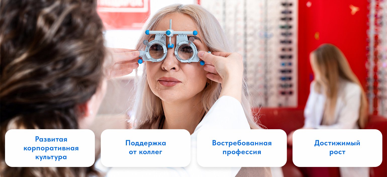 • Карьерный рост в оптометрии, офтальмологии, управлении розничной сетью и других подразделениях компании.