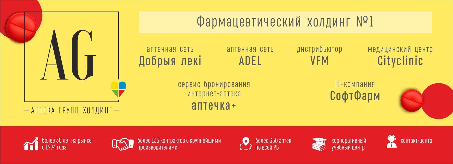 - Стабильность: 30 лет на рынке, 370+ аптек по всей Беларуси
