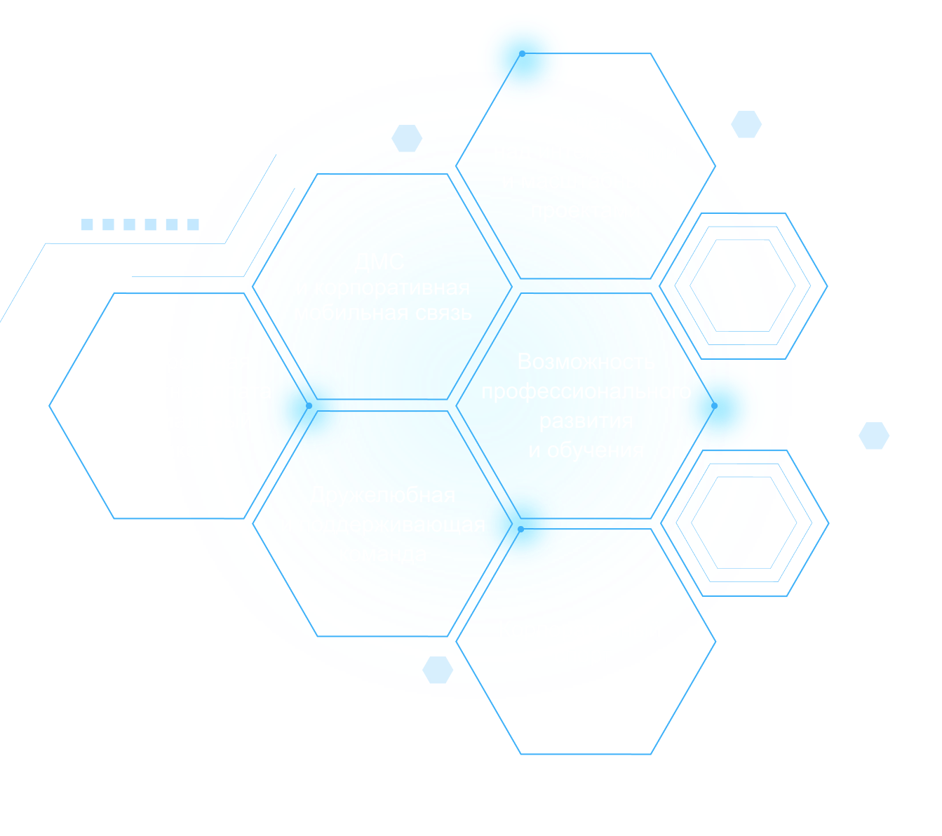 - Корпоративный спорт: футбол и волейбол за счёт компании, FH по специальным тарифам;