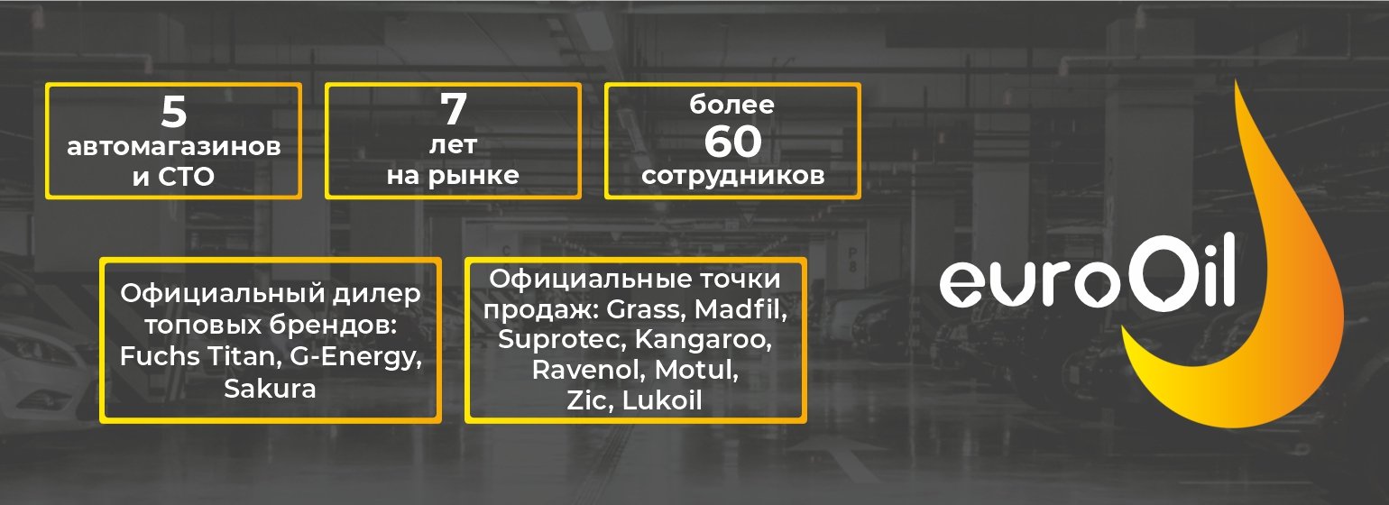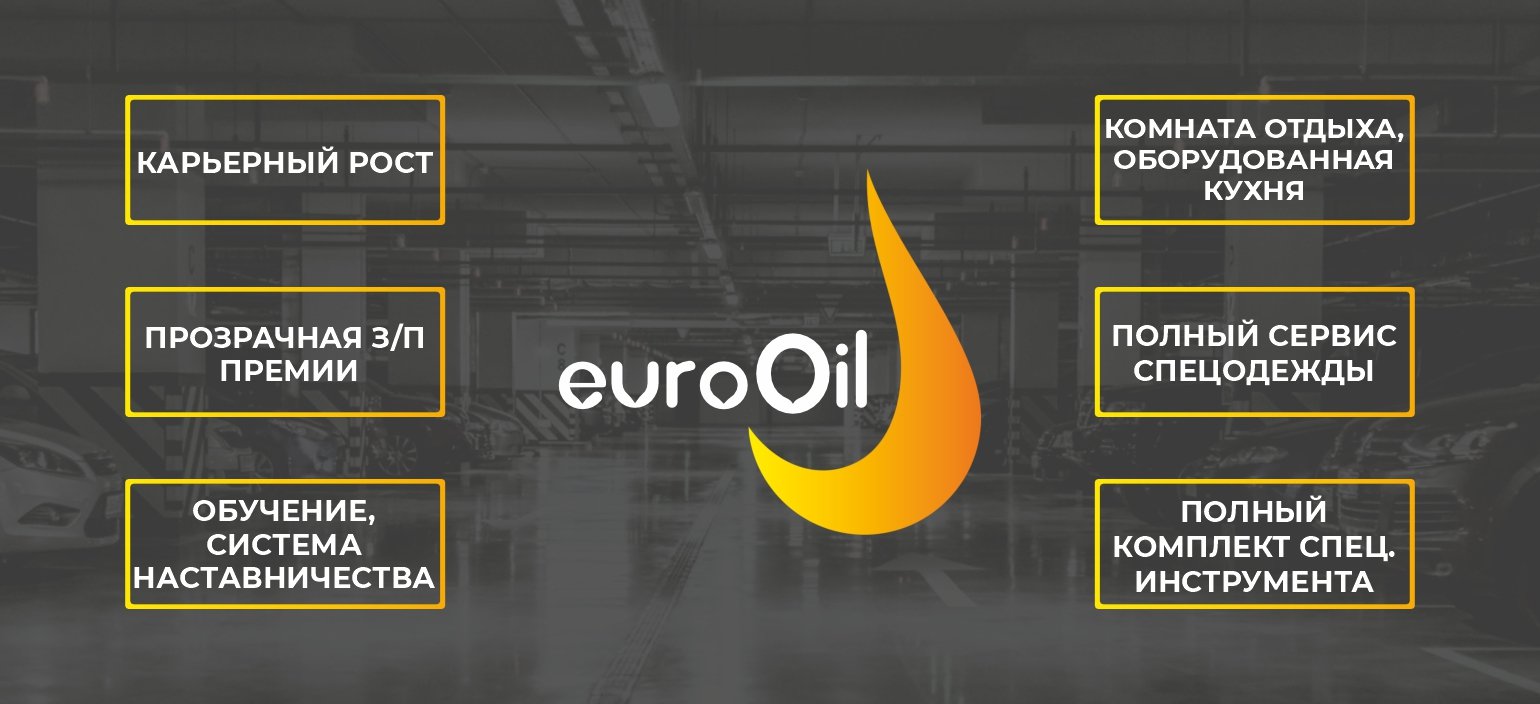 EuroOil - динамично развивающаяся сеть пунктов технического обслуживания автомобилей, основное направление это замена всех технических жидкостей и расходных материалов.