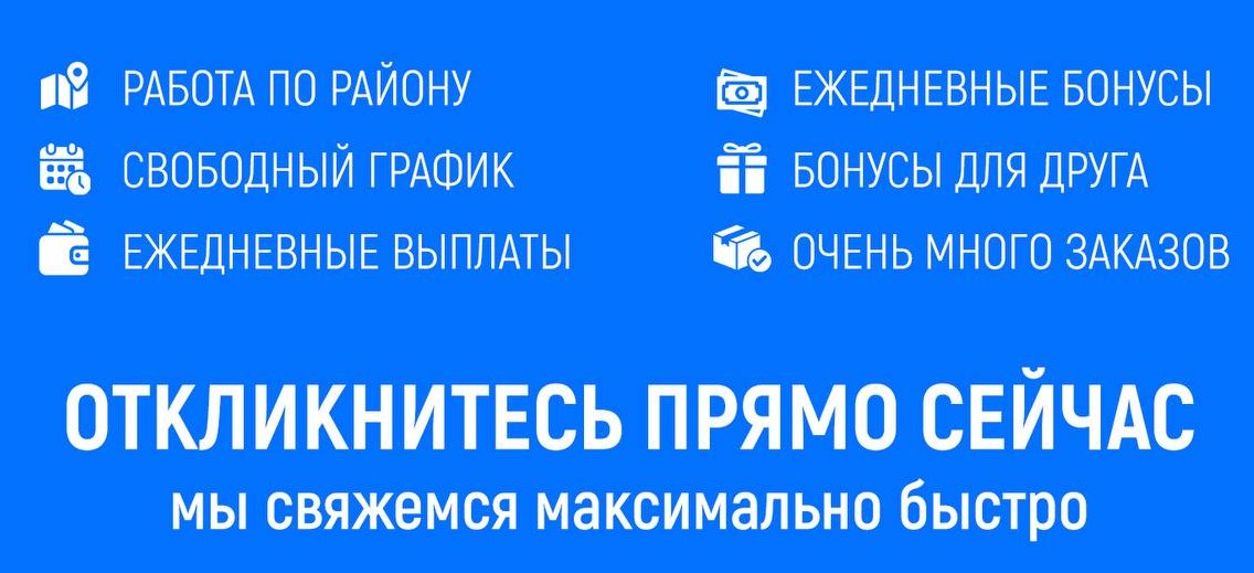 Добрый день! Мы ищем партнеров на подработку, совмещение или постоянную работу в новый сервис доставки. Выплаты ЕЖЕДНЕВНЫЕ!