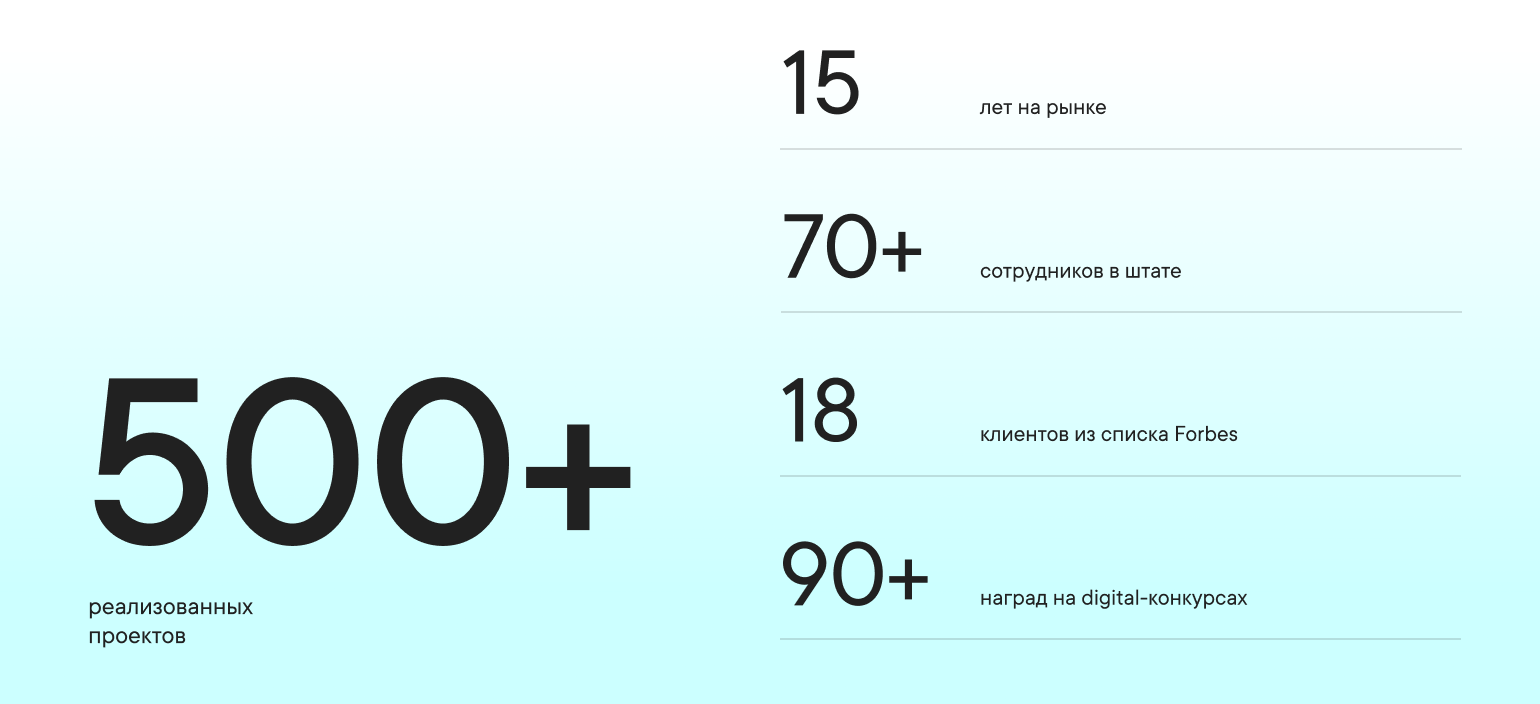 Участие в крупных и значимых проектах, которые регулярно занимают призовые места в рейтингах и конкурсах;